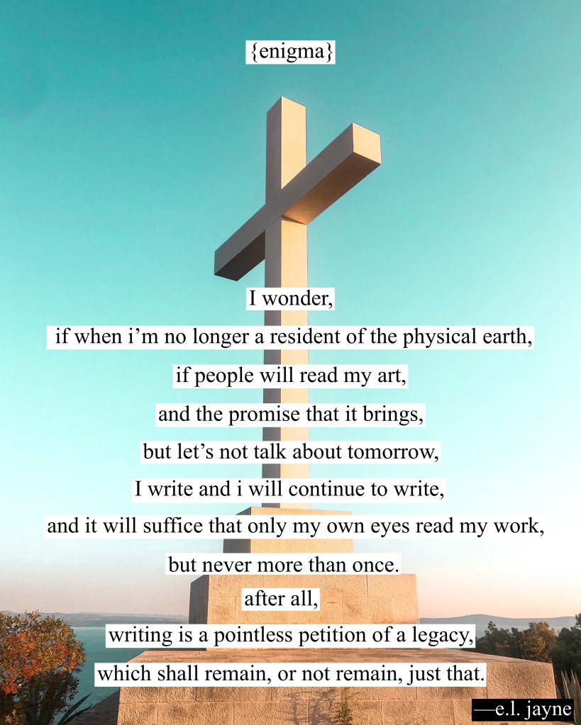 Love it “Writing is a pointless petition of legacy”.It reminds of the quote ,