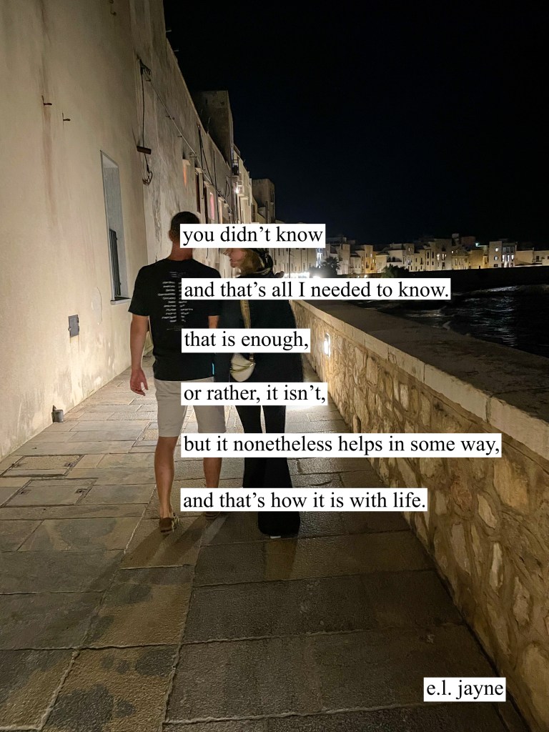 The finest part about poetry is the accentuated emphasis of the individual word; the epitome of less is more.