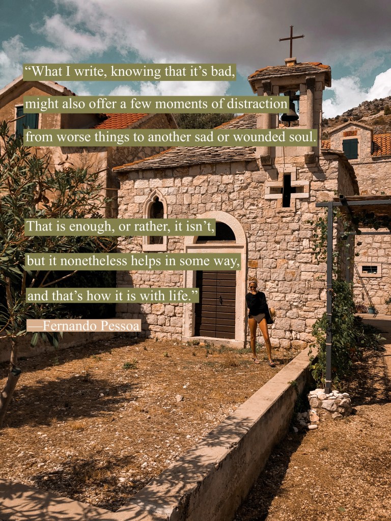 What I write, knowing that it’s bad, might also offer a few moments of distraction from worse things to another sad or wounded soul. That is enough, or rather, it isn’t but it nonetheless helps in some way, and that’s how it is with life.